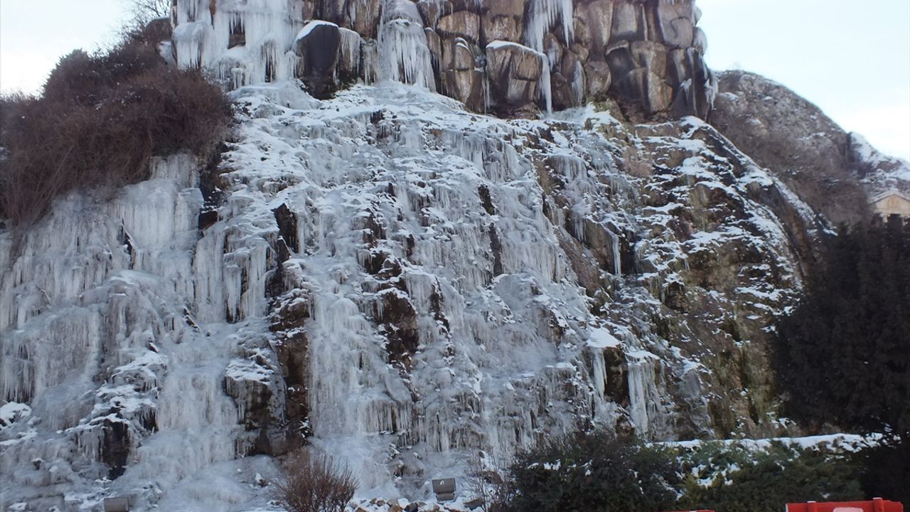 TOKAT (AA) - Soğuk havanın etkili olduğu Tokat'ın Turhal ilçesinde bulunan yapay şelale buz tuttu.