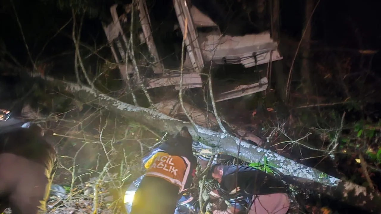Düzce'nin Yığılca ilçesinde, Pasabükü Orman İşletme Deposundan tomruk yükleyen bir tır, Kavuktaş mevkisinde uçuruma yuvarlandı.