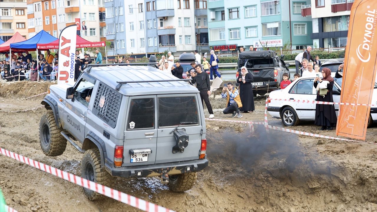 İlçe stadının yanındaki alanda düzenlenen festivalde, çamurlu parkurda zorlu engelleri geçerek ilerleyen ekipler, yarışı en kısa sürede bitirmek için mücadele etti.