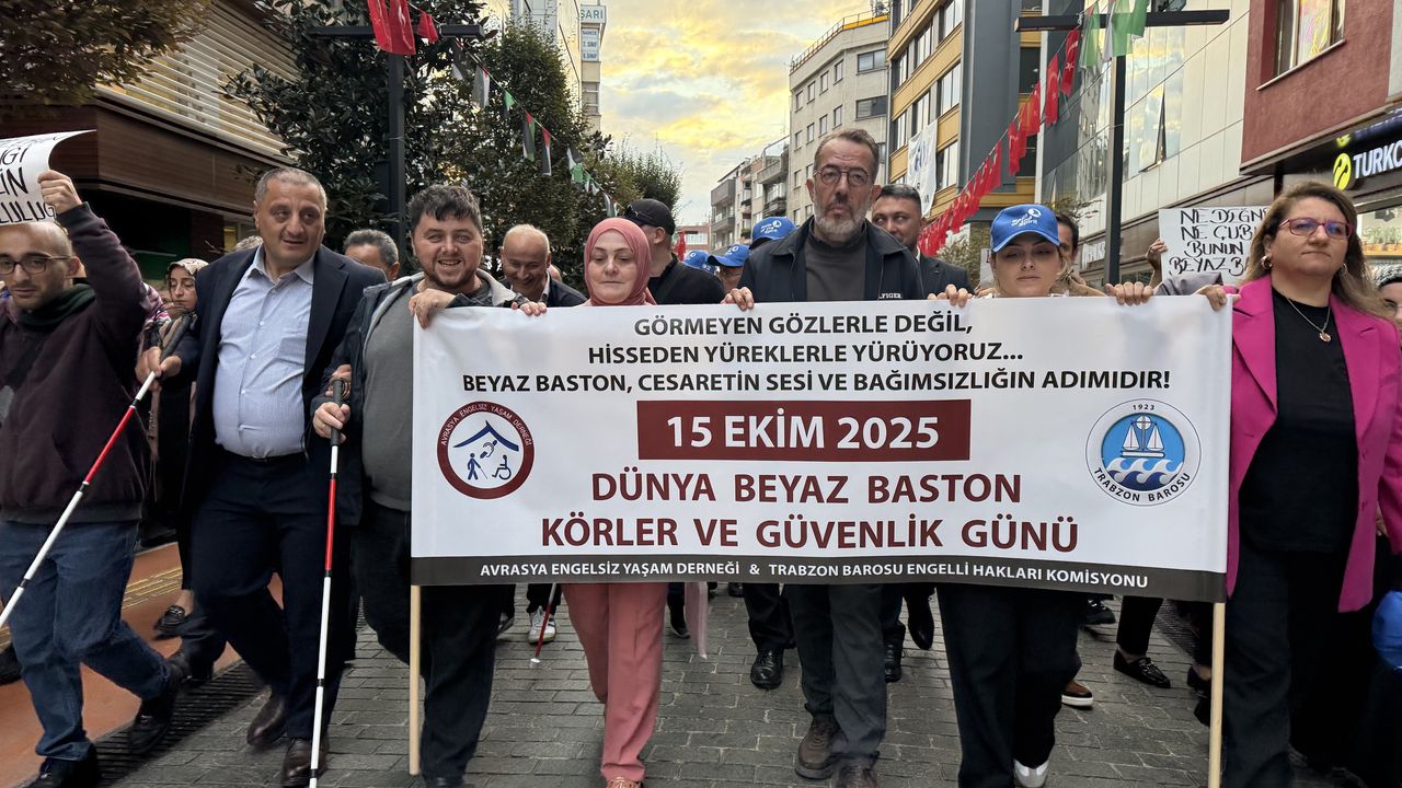 Avrasya Engelsiz Yaşam Derneği ile Trabzon Barosu Engelli Hakları Komisyonunca organize edilen etkinlikte Kahramanmaraş caddesinde bir araya gelen katılımcılar, beyaz bastonlarıyla 15 Temmuz Şehitleri ve Hürriyet Parkı'ndaki Atatürk alanına yürüdü.