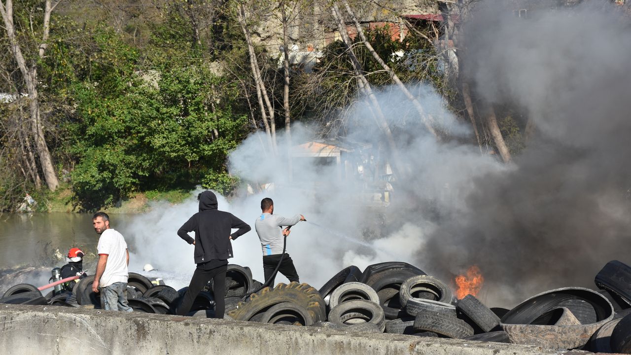 TRABZON (AA) - Trabzon'un Ortahisar ilçesinde atık lastiklerin bulunduğu bölgede çıkan yangın söndürüldü.