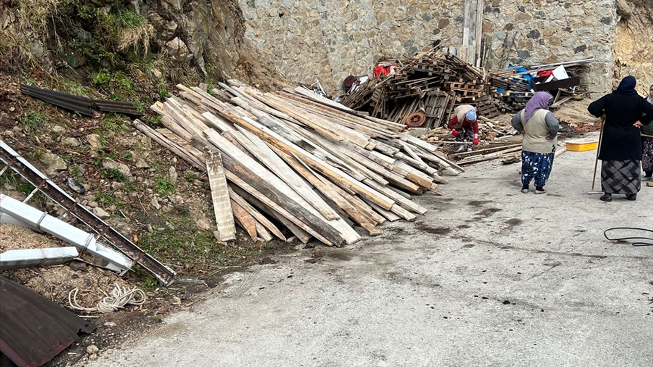TRABZON (AA) - Trabzon'un Çaykara ilçesinde fırtınada uçan çatı, park halindeki 4 otomobile zarar verdi.