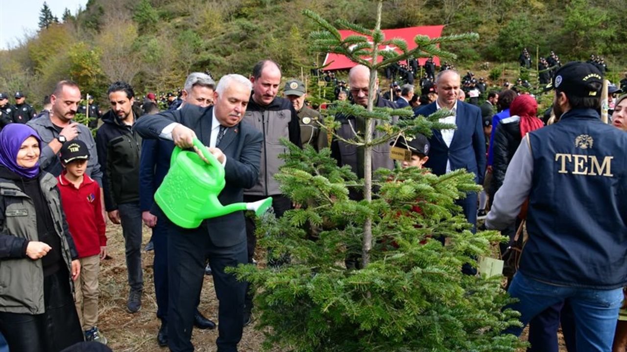 Terörle Mücadele Daire Başkanlığı, Orman Bakanlığı, Orman Genel Müdürlüğü ve İl Emniyet Müdürlüğü koordinesinde Trabzon Şehit Meriç Alemdar Polis Meslek Eğitim Merkezi atış alanında 'Şehitlerimiz için her bir fidan, geleceğimiz için bir nefes' temalı fidan dikimi etkinliği düzenlendi.