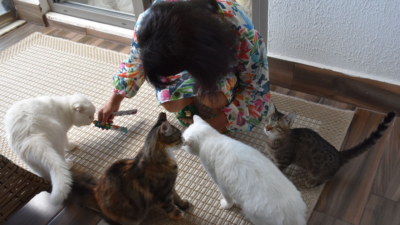 TRABZON (AA) - DUYĞU AVUNDUK - Trabzon'da yaşayan 43 yaşındaki Pınar Özkan, aralarında görme engeli de bulunan beş kedi ile evini paylaşıyor.