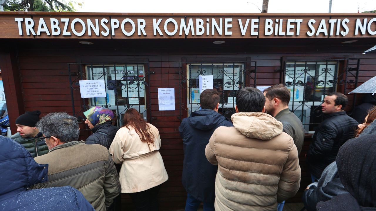 Bordo-mavili taraftarlar, Atatürk Alanı'ndaki bilet satış noktası önünde yoğunluk oluşturdu.