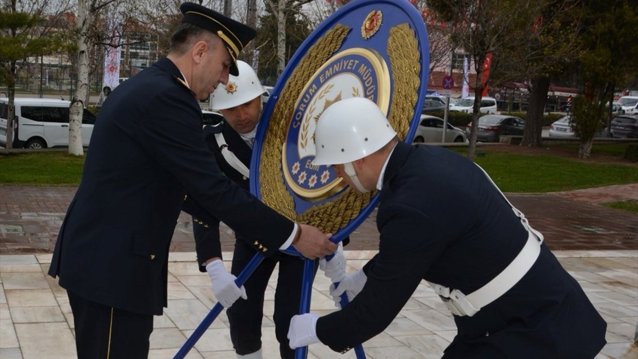 Çorum Emniyet Müdürü Arif Pehlivan, Atatürk Anıtı'na çelenk sunduktan sonra personelin gününü kutladı.