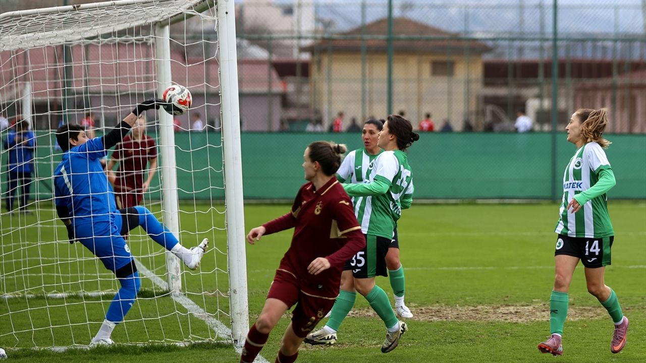 Kadir Özcan Tesisleri'nde oynanan maça hızlı başlayan bordo-mavililer, Donjeta Halilaj'ın 5. ve 17. dakikada, Birgül Sadıkoğlu'nun ise 27. dakikada bulduğu golle 3-0 öne geçti.