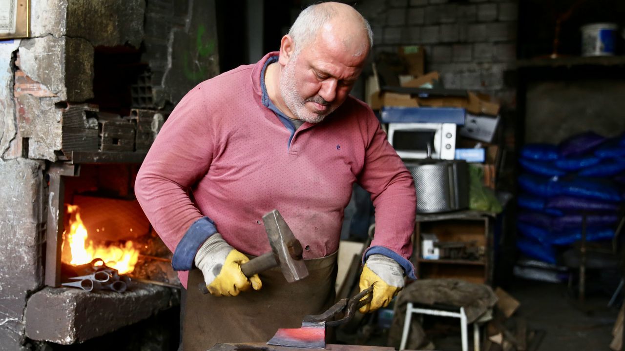 GİRESUN (AA) - GÜLTEKİN YETGİN - Giresun'da yaklaşık 40 yıldır demircilik yapan Ahmet Henden, çelik ve demire şekil vererek tarım aletleri üretiyor.