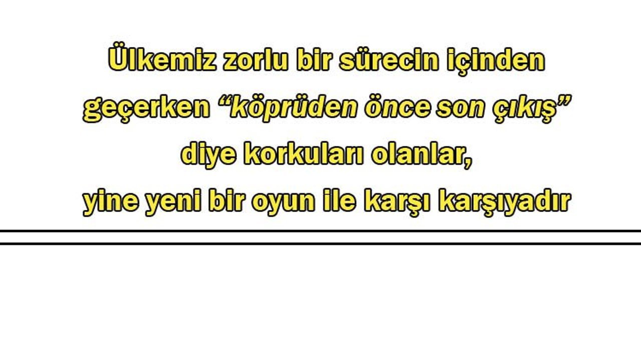 Ülkemiz zorlu bir sürecin içinden geçerken “köprüden önce son çıkış” diye korkuları olanlar, yine yeni bir oyun ile karşı karşıyadır.