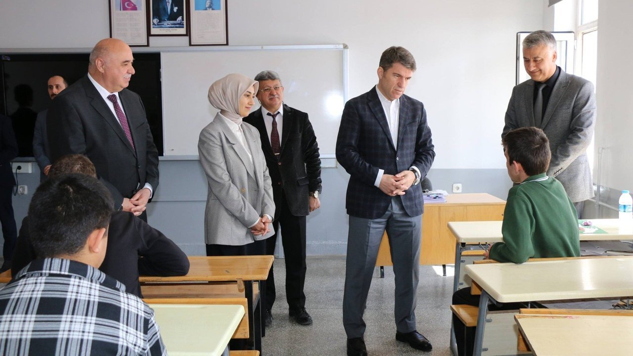 Öğrencilerin derslerine katılan Vali Bakan, eğitim süreçleri ve okulun akademik durumu hakkında idarecilerden bilgi aldı.