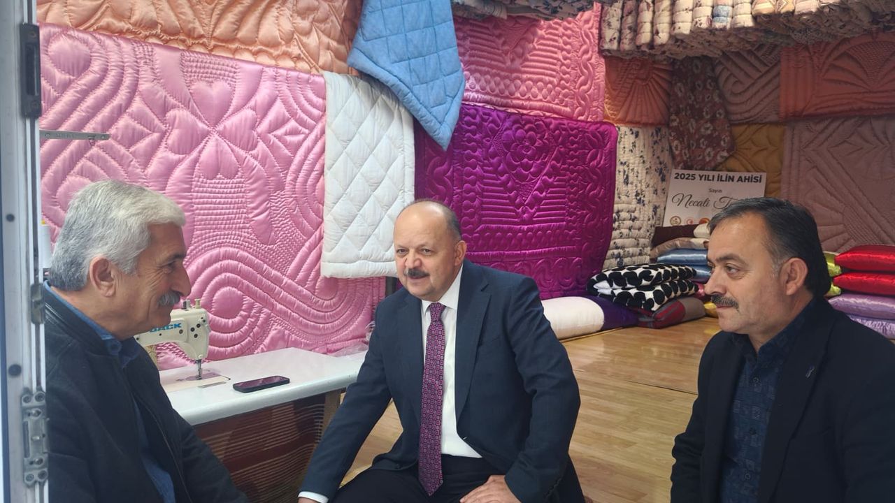 Dallı, ziyarette, yorgancılık yapan 56 yıllık esnaf Turhal'ı Kastamonu'da ahilik kültürünü yaşattığı için tebrik etti.