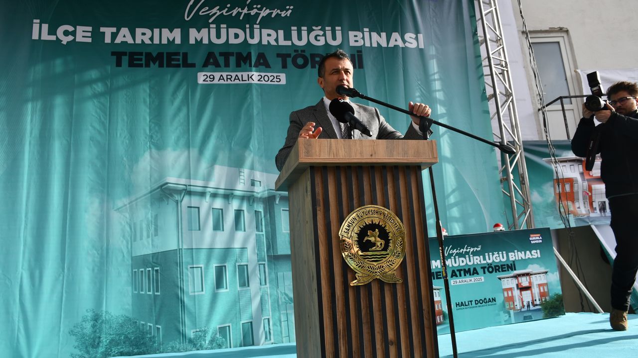 Samsun Büyükşehir Belediye Başkanı Halit Doğan ise 'İlçe Tarım ve Orman Müdürlüğü yeni hizmet binasının 29 Ekim 2026 tarihinde hizmete açılacak. Seçim öncesinde söz verdiğimiz gibi Vezirköprü'ye Tarım ve Orman Müdürlüğü hizmet binasını kazandırıyoruz. Bugün temelini attığımız bu yeni hizmet binasını, inşallah önümüzdeki yıl 29 Ekim'de açacağız.' diye konuştu.