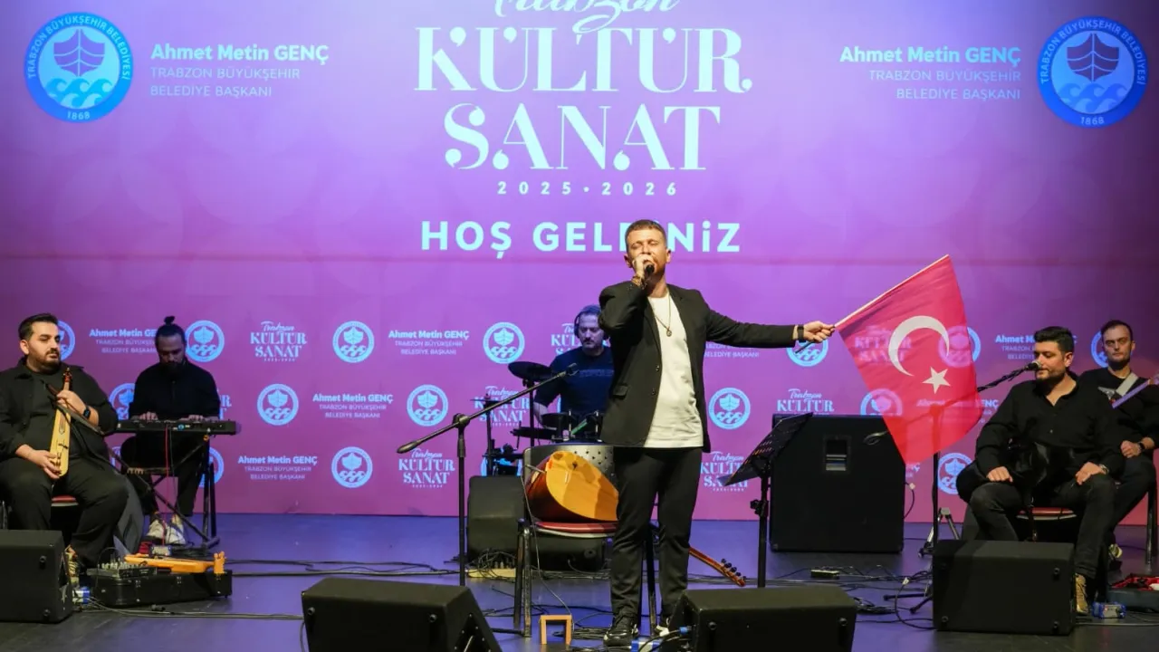 Trabzon Büyükşehir Belediyesi'nin ev sahipliğinde düzenlenen Volkan Arslan konseri, sanatseverlerden yoğun ilgi gördü. Nusaybin sınırında bayrağımıza yapılan alçak saldırıya tepki gösteren Volkan Arslan'ın, türkülerini elinde Türk bayrağıyla seslendirmesi dinleyicilerden büyük alkış aldı.