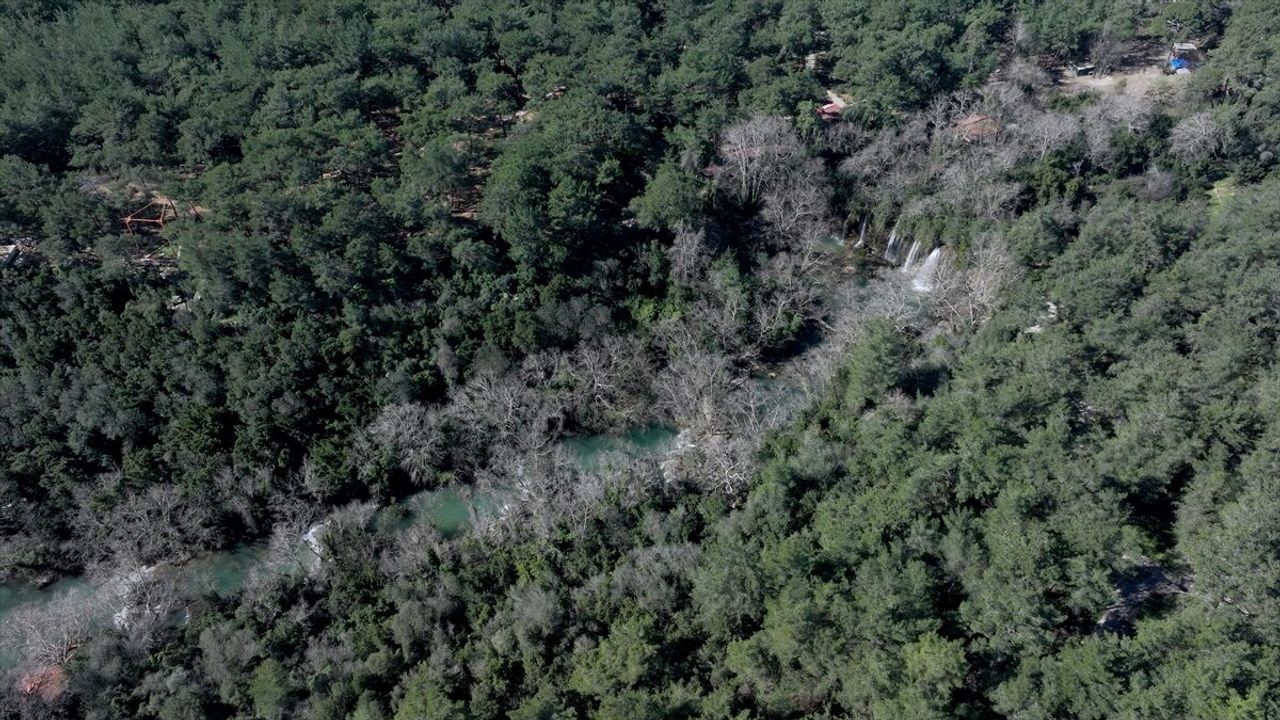 Şelale ve akarsularda oluşan manzara AA ekibi tarafından dronla görüntülendi.