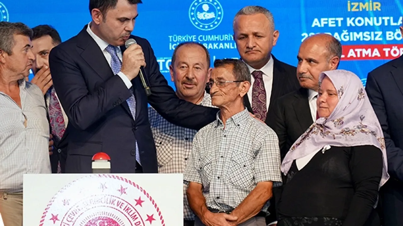 Çevre, Şehircilik ve İklim Değişikliği Bakanı Murat Kurum, İzmir Ödemiş’te orman yangınında zarar görenler için 281 konutun temel atma törenine katıldı. Konutların 1 yıl içinde teslim edileceğini açıklayan Kurum, “Ormanlar ranta açılıyor” iddialarını yalanladı.İZMİR (İGFA) - Çevre, Şehircilik ve İklim Değişikliği Bakanı Murat Kurum, İzmir’in Ödemiş ilçesinde orman yangınından etkilenen vatandaşlar için inşa edilecek 281 konutun temel atma törenine katıldı.
