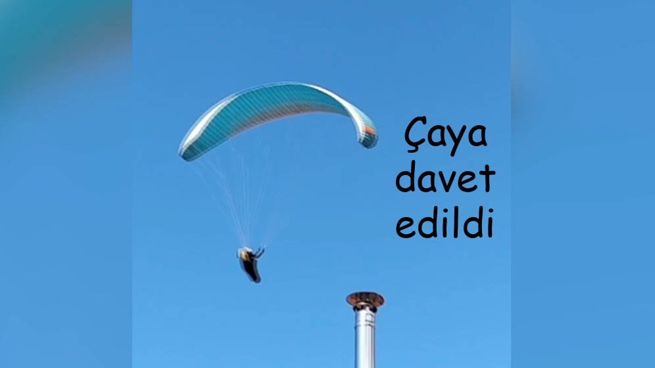 Zonguldak'ın Kilimli ilçesinde yamaç paraşütü yapan sporcuyu çaya davet eden kişi o anları cep telefonuyla kaydetti.