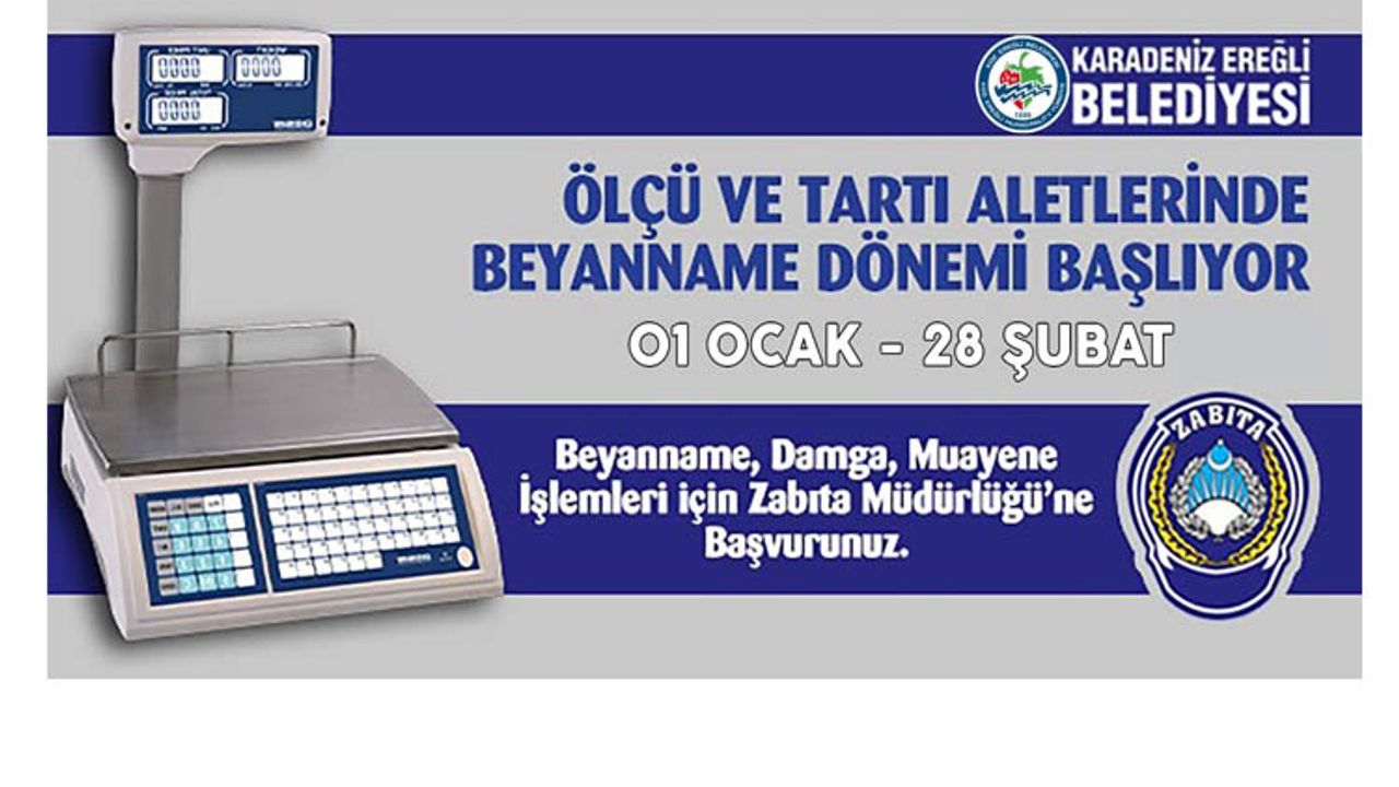 Yetkililer, 2024 yılına ait terazilerin periyodik muayeneleri için beyanname vermek isteyen vatandaşların, 28 Şubat 2026 tarihine kadar Merkez Kapalı Pazaryeri’nde bulunan Zabıta Amirliğine başvuruda bulunmaları gerektiğini hatırlattı.