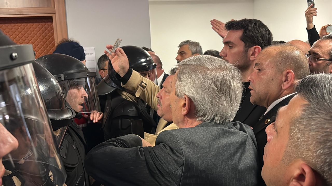 Daha sonra birinci başkan vekili, katip ve encümen seçimi için salona gelerek meclisi devam ettirmek isteyen AK Partililer, CHP'lilerin kapıyı içerden tutması nedeniyle salona giremedi.